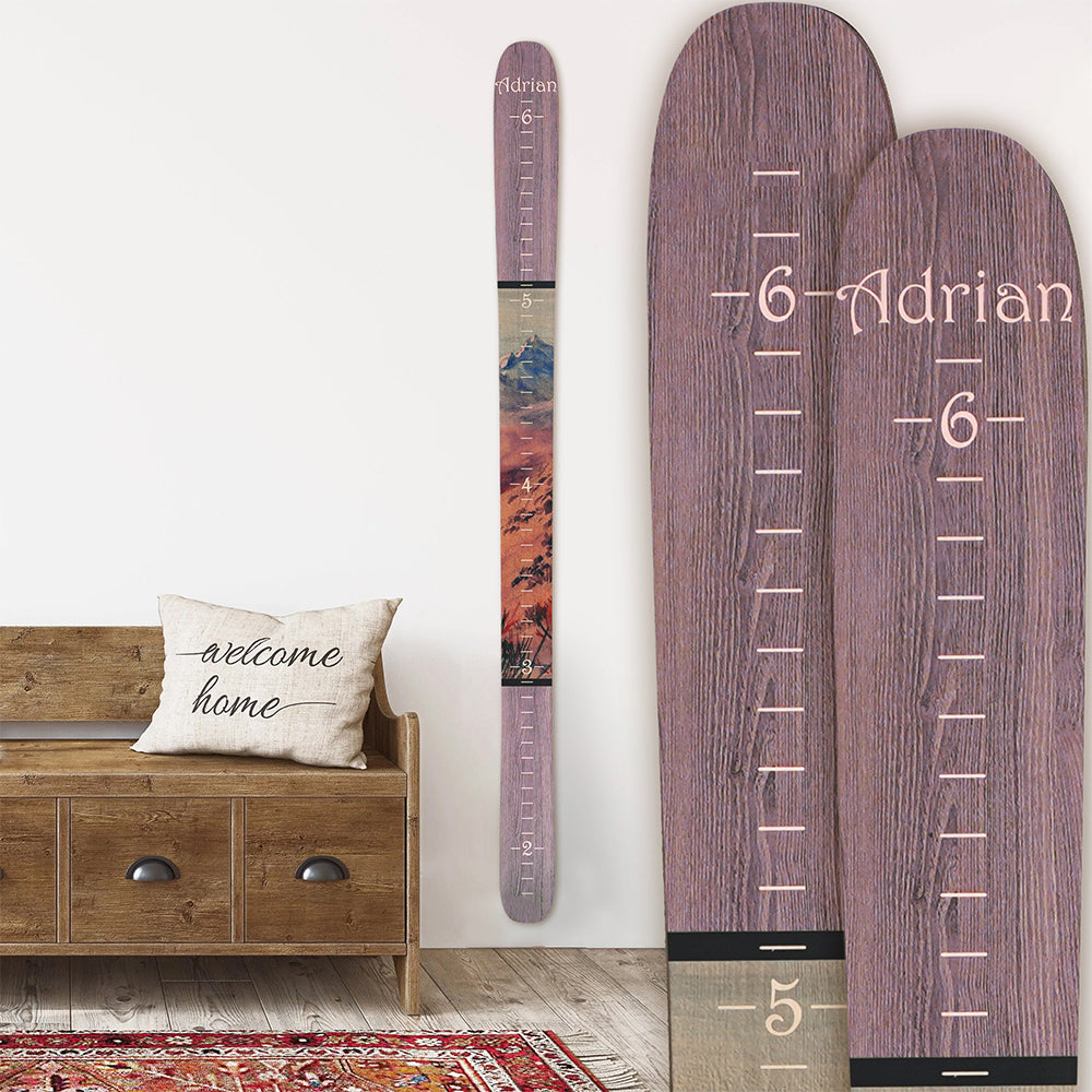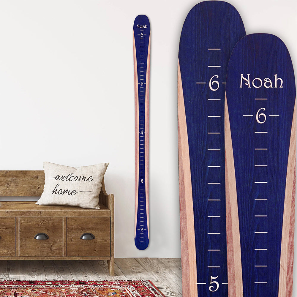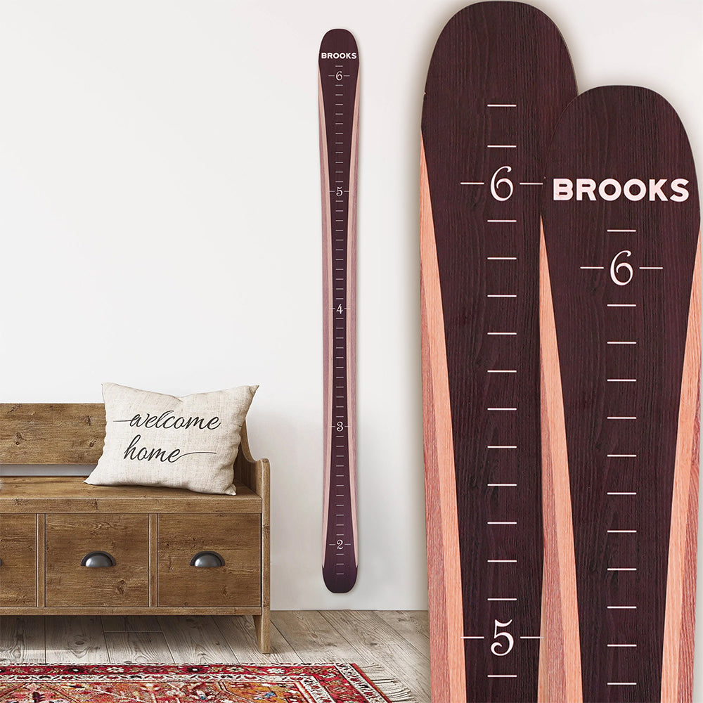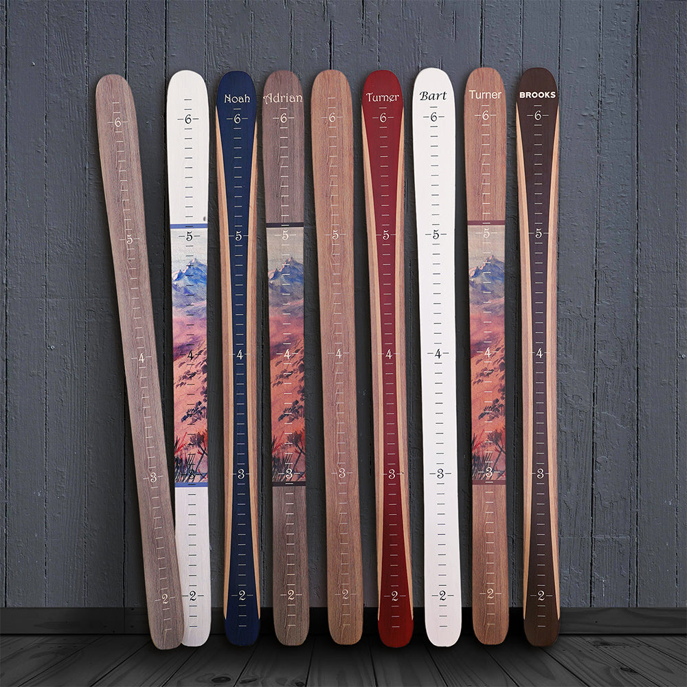 Bring your love of the slopes into your home for year-round enjoyment with our wooden ski growth chart. As your children learn to ski down the mountain, mark their milestones as they grow up with this handcrafted ski growth chart.