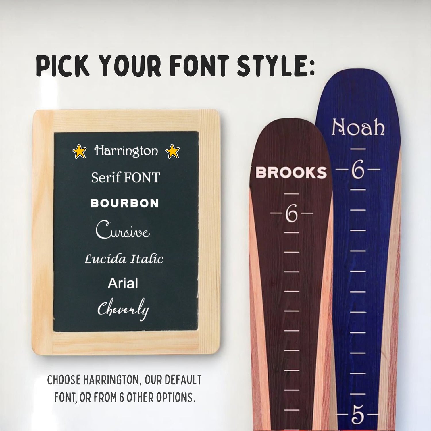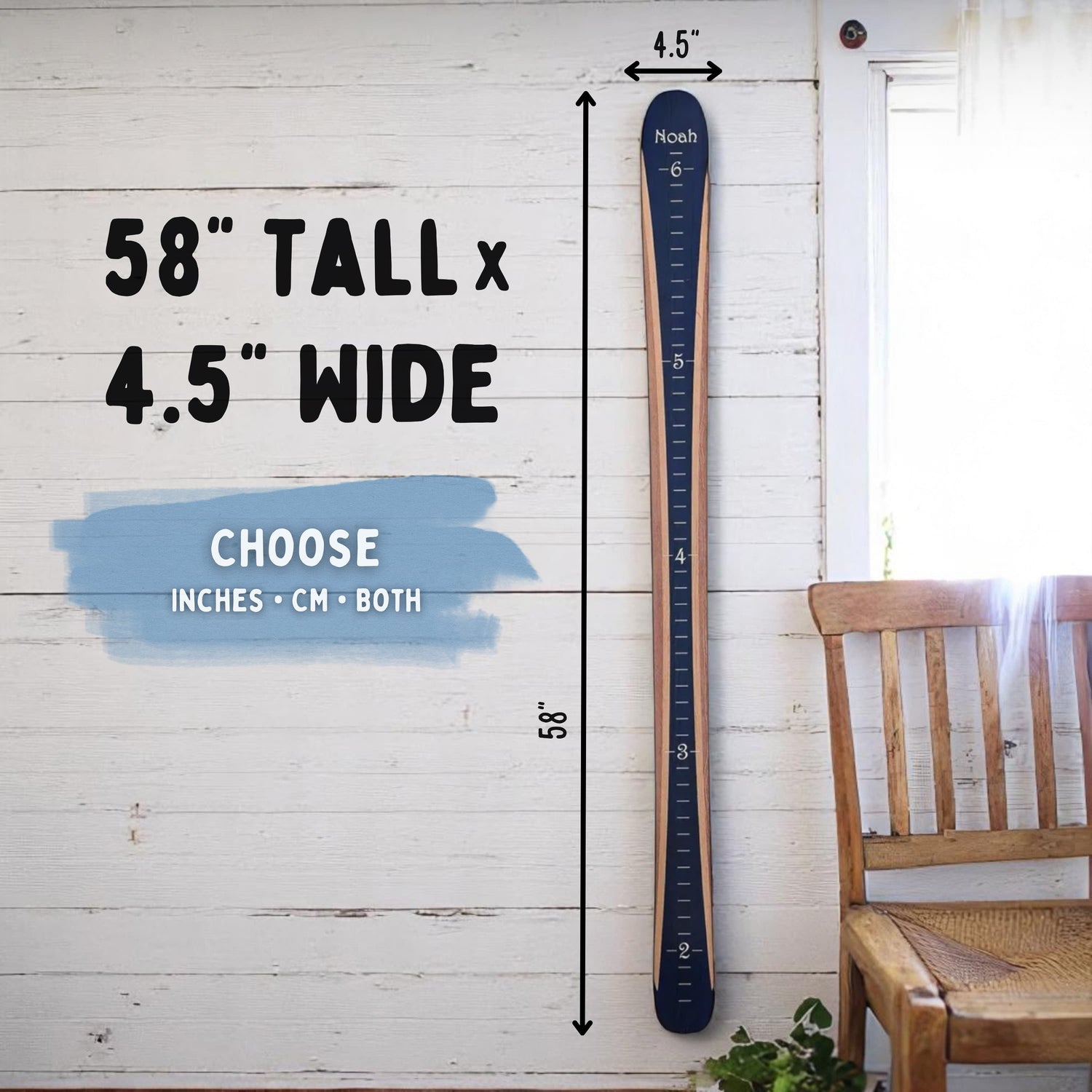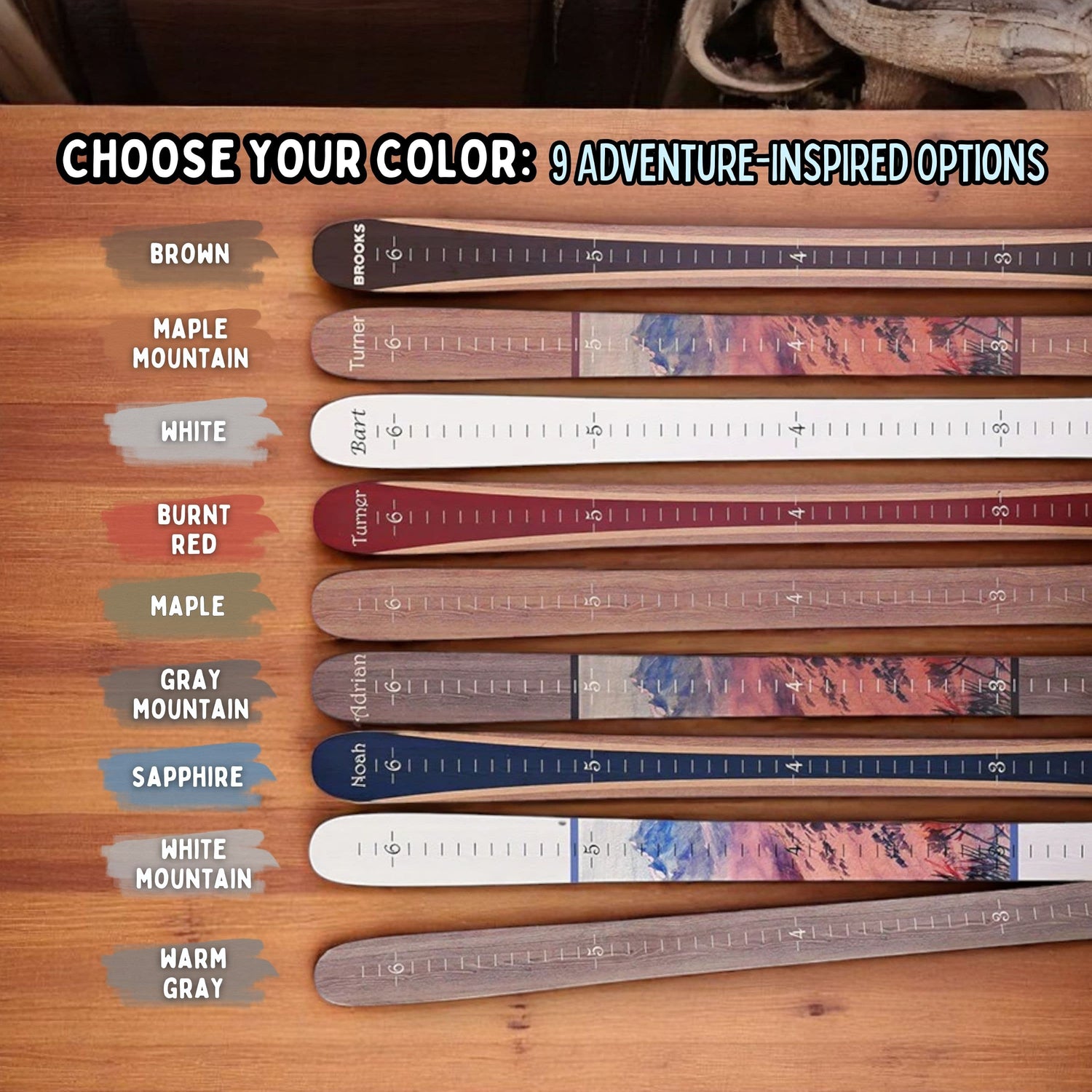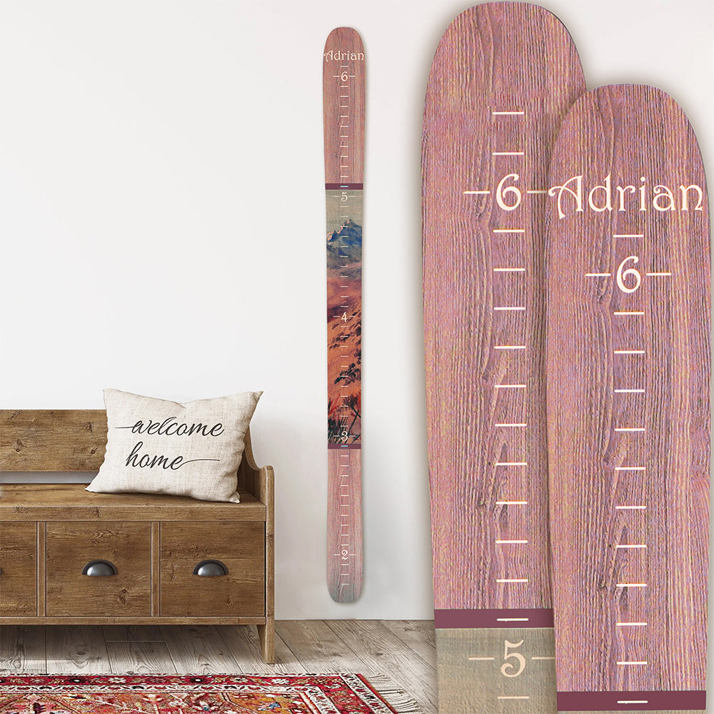 Bring your love of the slopes into your home for year-round enjoyment with our wooden ski growth chart. As your children learn to ski down the mountain, mark their milestones as they grow up with this handcrafted ski growth chart.