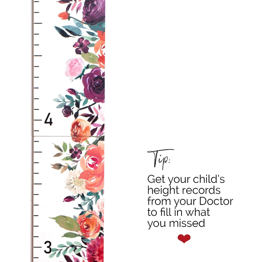 This colorful height chart adds floral beauty to any room while being an easy way to measure growth. Display your chart and watch the blossoming of memories as your child reaches new heights.