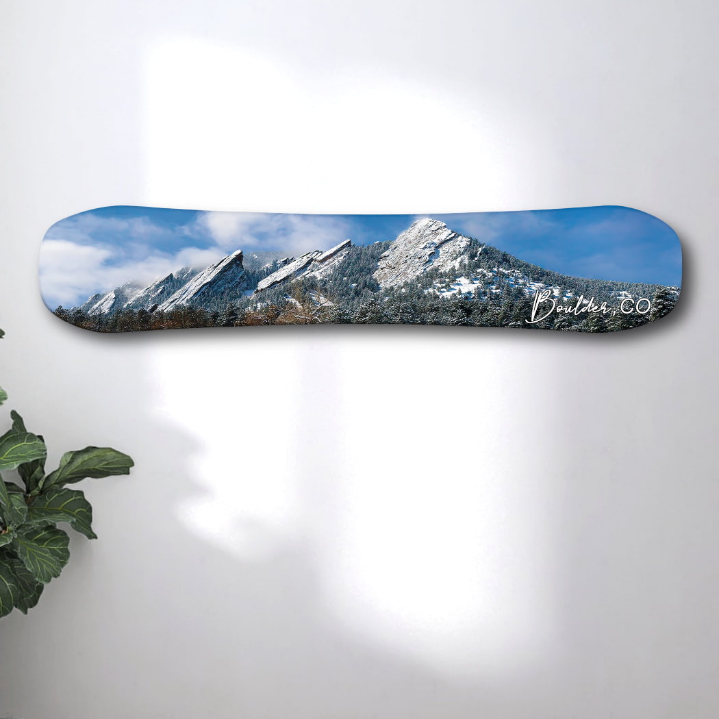 Flatirons Mountain Boulder Snowboard Print | Snowboard Wall Décor | Colorado Skiing