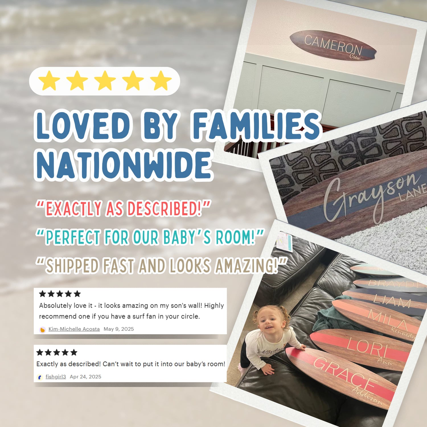 Customers love displaying their surfboards in nurseries, playrooms, beach houses, or at events like baby showers. Wherever they go, they’re sure to make a statement!