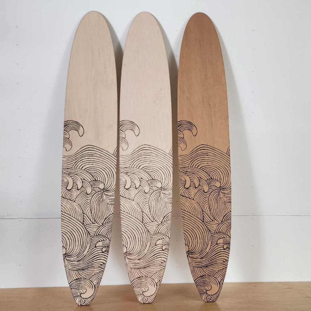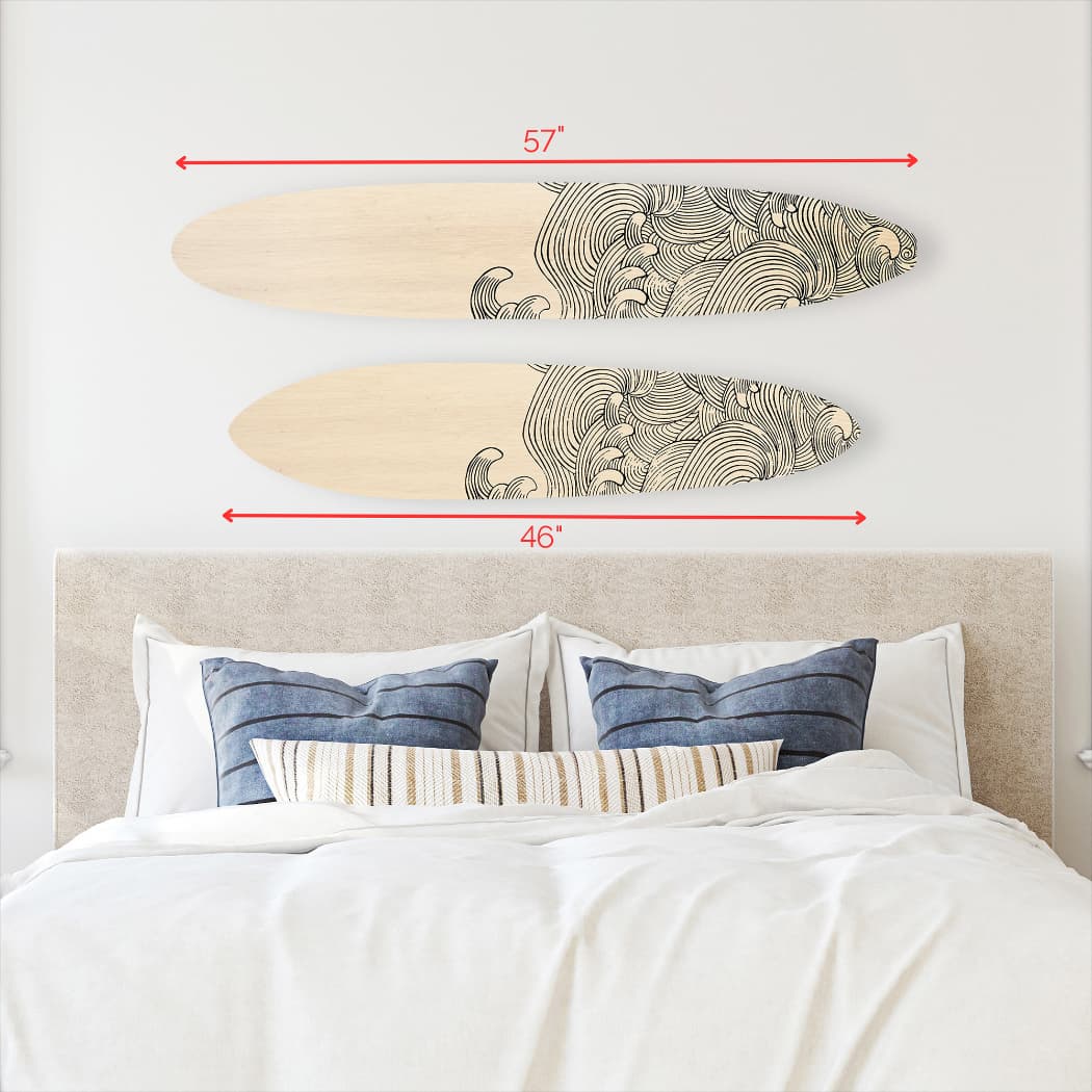 Wave Surfboard Wall Art | Surfboard Wall Decor | Wave Drawing