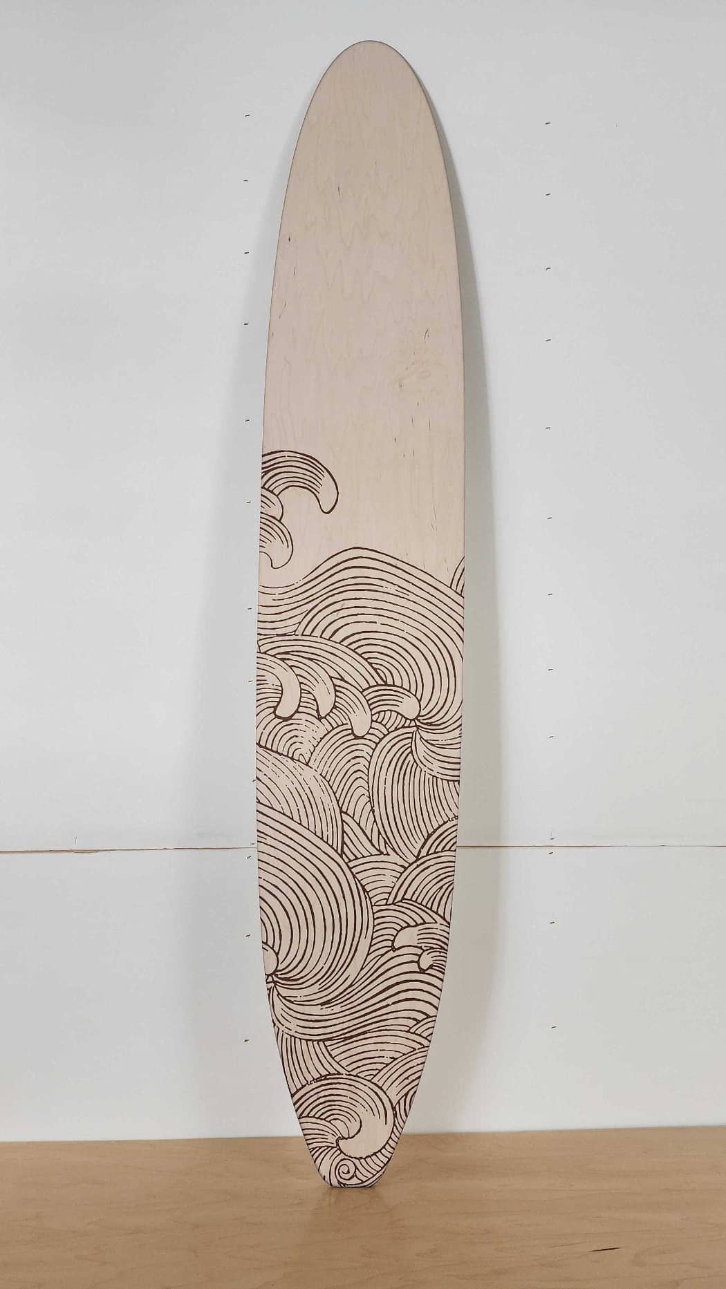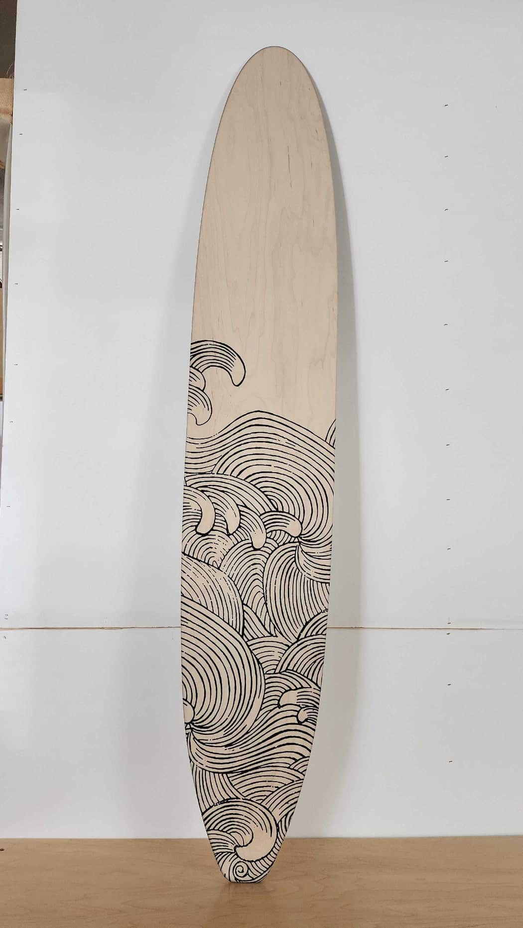 Wave Surfboard Wall Art | Surfboard Wall Decor | Wave Drawing - 57" Longboard / Natural with Black is backordered and will ship as soon as it is back in stock.